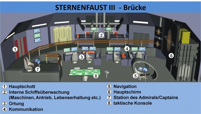 Risszeichnung der Brücke der STERNENFAUST III. Gezeichnet von der Bastian