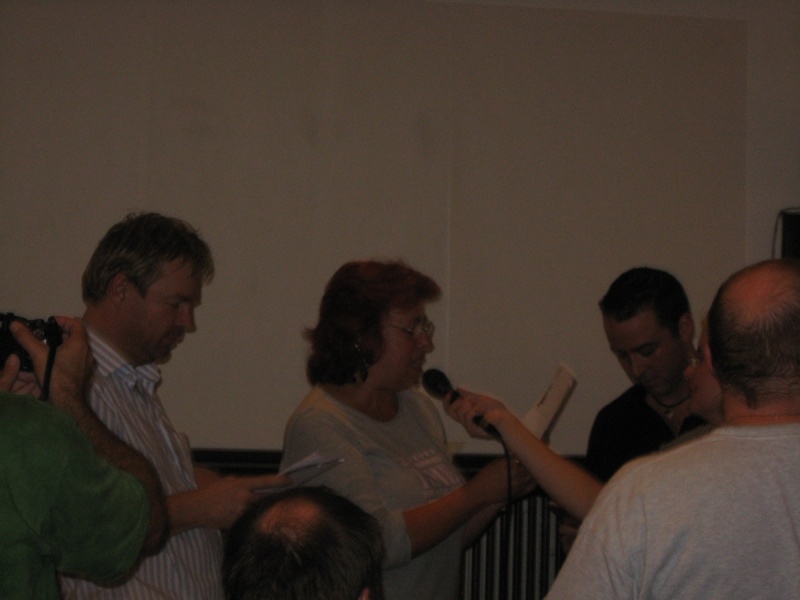 Auf dem Bild ganz links ist Gerry Haynaly beim AustriaCon 2010. In der Mitte die Autorin Uschi Zietsch und rechts der Autor Marc A. Herren. Alle drei beim Vortragen eines Livehörspiels von Marc.